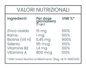 • Contribuisce alla normale pigmentazione di pelle e capelli